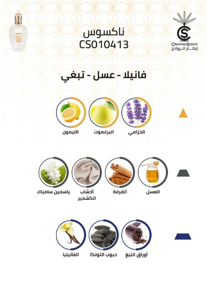 عطر حمضي فريد يتمتع بثبات و أداء عالي، ينشر عبيره من عام ٢٠١٥، بتوليفة عطرية تبدأ برائحة الخزامى و البرغموت و الليمون، مع قلب من العسل و القرفة و أخشاب الكشمير و ياسمين سامباك